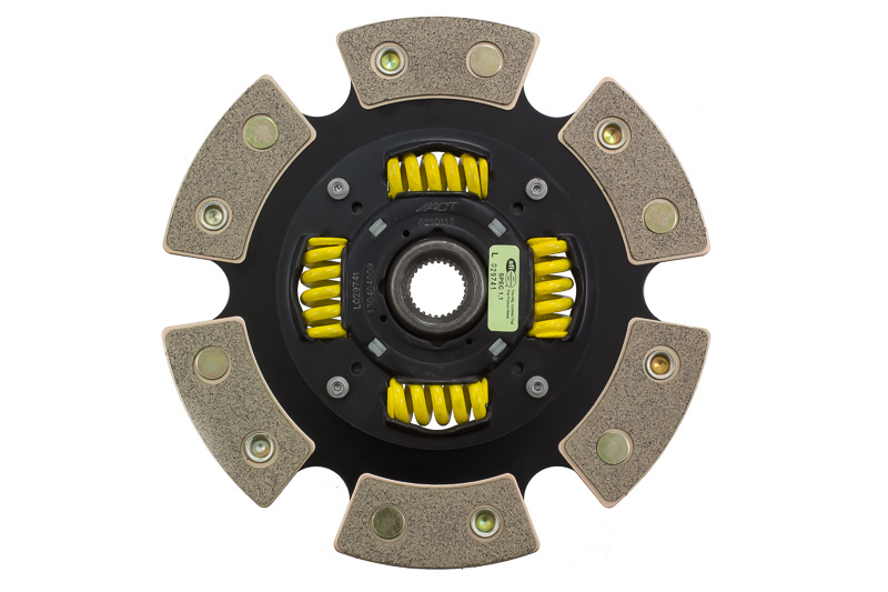 6210115 is a 6-pad spring-centered race discs made with high quality ceramic friction materials. The engagement is harsher, but shifting is faster. The heavy duty torsional dampening springs are stronger, in most cases, than standard springs and are provided in the best sizes and spring rates to suit the application. The 6-pad, spring-centered disc is recommended for larger clutch sizes to absorb more heat and for smoother engagement.