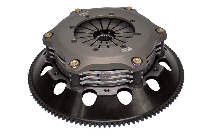 T1R3-T01 race, triple disc kits are race-ready for the serious enthusiast who needs a direct bolt-in kit, requiring no additional modifications. ACT’s sintered iron race discs offer the highest torque capacity of all ACT race discs and have ultra-high heat capacity. All ACT triple disc kits include a CNC-machined and dynamically balanced flywheel for trouble free use. All kits undergo an exclusive four-stage, heat-treating process on all diaphragms. ACT triple disc kits include a pressure plate, three discs, two floaters, and flywheel. Some kits may include a pilot bearing and release bearing. ACT Triple disc kits meet SFI Specification 1.2.