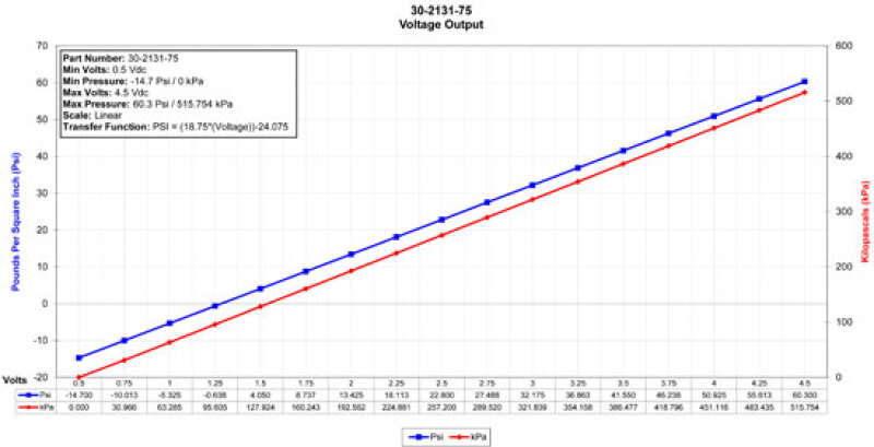 AEM offer high quality brass PSIa sensors in 30(2BAR), 50 (3.5BAR) and 75 (5BAR). PSIa is referenced to absolute zero. Absolute zero is the pressure measurement when all the pressure exerted by the atmosphere has been removed. The most common use for absolute pressure sensors is reading manifold pressure. PSIa sensors are required of you wish to measure vacuum. A PSIa sensor will read about 14.7 PSI when the sensing element is exposed to atmospheric pressure at sea level however they can be recalibrated to read zero at atmospheric and a negative number at values less than atmospheric pressure.