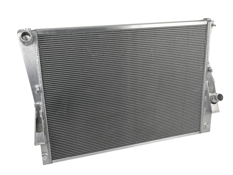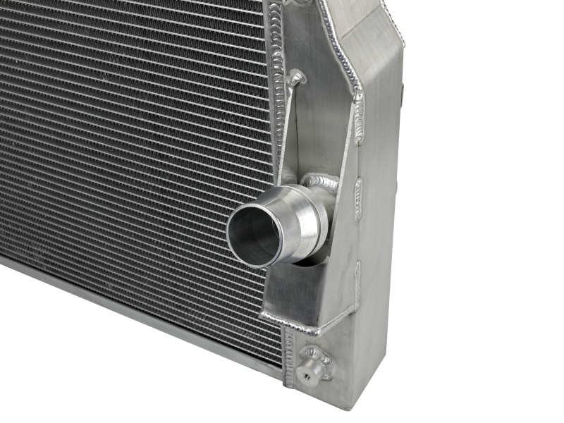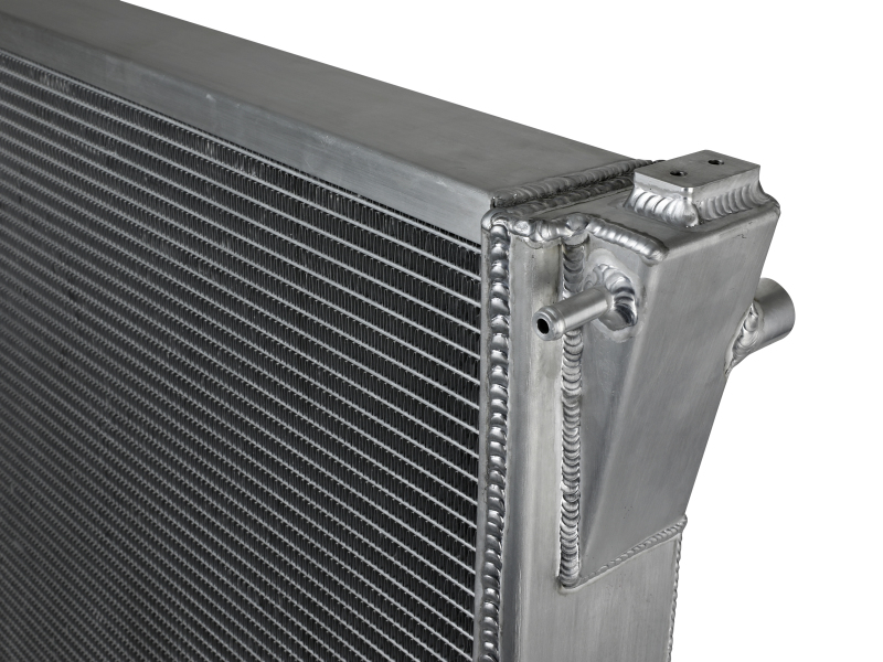 This BladeRunner Street Series Radiator features a 2-3/4 IN thick tube and fin core which provides greater heat dissipation and better coolant flow than the factory radiator for optimum cooling efficiency. The fabricated end tanks are constructed out of 1/8″ aluminum plates for strength and durability. The upper mounts have been configured to provide maximum strength and durability. With billet aluminum mounting locations and heavy-duty stainless steel brackets, this radiator is protected from the abuse of rock-crawling and street hauling. Billet aluminum inlet and outlet for long-lasting reliability. 100% TIG-welded for proven strength and durability. BladeRunner Street Series Radiators include a brass drain valve with fitting to easily connect a hose for draining coolant. Utilizes the factory mounting locations to provide stability for a hassle-free installation. Brushed aluminum finish with an aFe POWER logo painted on the front.