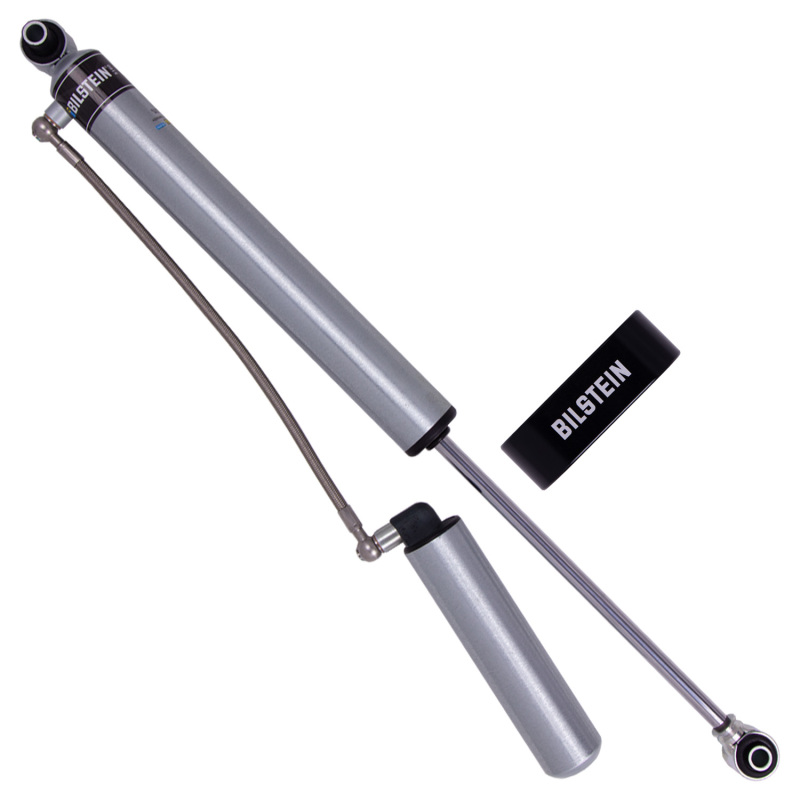 Bilstein B8 5160 remote reservoir shock absorbers are designed as a direct fit solution for lifted trucks and SUVa**s. The remote reservoir will offer increased cooling capacity and wheel travel to optimize overall performance compared to a traditional shock absorber. These shock absorbers feature a monotube design for consistent fade free performance and utilize velocity sensitive digressive valve settings which are tuned for each specific application. Each shock absorber is fitted with a unique 360 degree swivel banjo hose fitting, providing a clean, low profile installation. B8 5160 remote reservoir shock absorbers will increase overall durability of your vehicle allowing you to conquer the harshest of off-road environments.