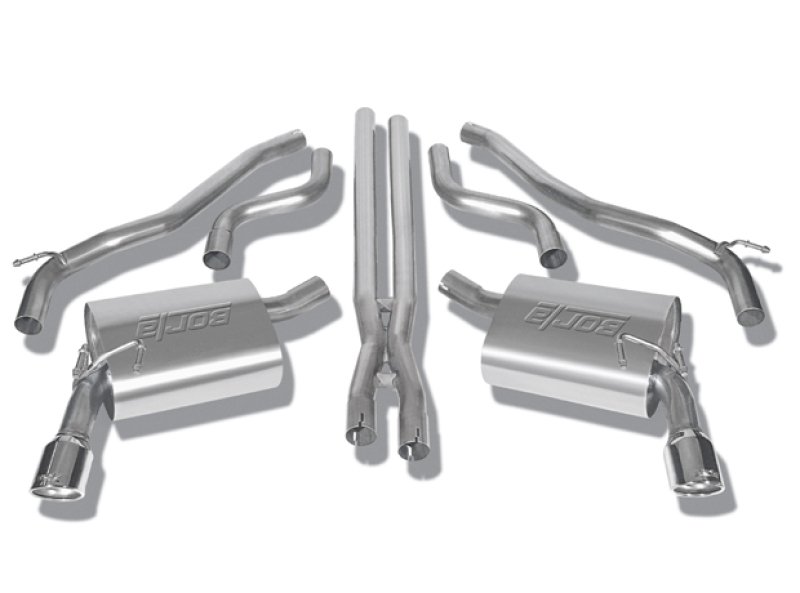 The BORLAA*A? sound of power. Its been described as asonic shot of adrenaline. An intoxicating concert ofsteel, gears and combustion that echoes from thespeedways, deserts and highways of the world.The sound of more victory laps than any otherbrand, the BORLAA*A? exhaust note has become the quintessentioal soundtrack of high-performance motoring. And like all good automotive designs there is function behing the form. As any driving enthusiast knows, the sound of an exhaust provides more than just ear candy. Its a communications conduit between car and driver. A link between human and machine. The exhaust sound provides accoustic feedback of engine rpm to aid the driver in critical decisions such as gear selection or throttle input in rev-match shifting. At BORLAA*A?, we understand this concept better than any exhaust manufacturer. Combining patented technology with computer modeling, extensive prototyping and advanced sound analysis tools. BORLAA*A? engineers spend countless hours tuning exhaust systems to best reflect the personality and performance of vehicle applications. The result is an enhanced driving experience. With unrivaled clarity, the BORLAA*A? exhaust note can help a driver stay within the powerband through a difficult section, using the exciting sensory feedback of sound. With unrivaled clarity the Borla exhaust note can help a driver stay within the powerband through a difficult section, using the exciting sensry feedback of sound.
