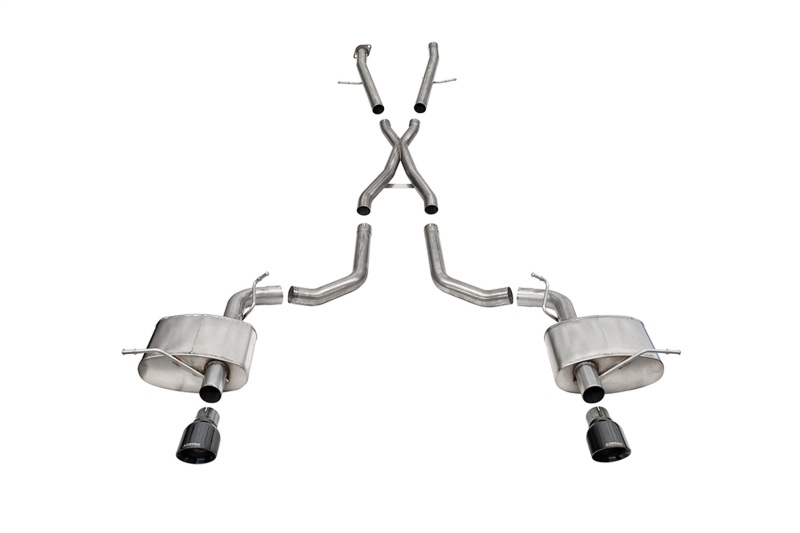 CORSA Performance’s 2021+ Dodge Durango Hellcat Exhaust Offering Has Arrived! The Dodge Durango Hellcat catback exhaust assortment is available in both Sport and Xtreme sound levels allowing the driver to tailor the exhaust system to their exact sound profile. Made from 2.75 in. 304 stainless steel construction and featuring CORSA’s Best-in-Class No Drone RSC(R) Technology, this is the ultimate Durango Hellcat exhaust system. CORSA’s Sport sound level is 6 decibels louder than the stock exhaust system and offers an aggressive cold start, moderately aggressive exhaust note under acceleration while maintaining stock levels of in-cabin volume. CORSA’s Xtreme system is 17 decibels louder than the stock system and noticeably more aggressive than the Sport system on both cold start and during acceleration while only inducing slightly more in-cabin volume. All exhaust systems come with dual wall stainless steel exhaust tips and come available in both polished and black PVD coating. CORSA Performance exhaust systems are made possible through a 25+ year commitment to perfecting the Science of SoundA? and are proudly made in the USA and backed by a Limited Lifetime Warranty.