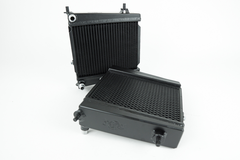 Don’t be fooled by other high-performance aftermarket options that utilize the OEM plastic rock guard. The OEM rock guard’s vertical channel design is specifically designed to only work with the tube spacing found on the OEM core. When the OEM rock guard is installed on an aftermarket radiator, it actually blocks a significant amount of surface area. Obviously this is detrimental to the intended performance. During CSF’s own R&D phase, CSF analyzed both the OEM and other aftermarket offerings and decided to go the extra mile. CSF redesigned the included rock guard to allow maximum flow to the radiator core, while still offering ample protection from small rocks and road debris – all proven on CSF’s in-house wind tunnel. CSF’s new Auxiliary Radiator fits both the left and right side of the vehicle as a drop-in fit. Thus requiring no modifications to install. Each features CNC machined mounting brackets and OEM style “Quick Connect” inlet/outlet connections. This makes for a true plug-and-play installation that does not interfere with aftermarket performance aero modifications.