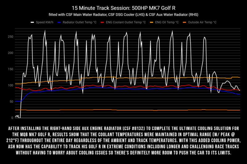 CSF has over 5 decades of experience manufacturing radiators. So when it comes to keeping your engine cool and your A3/S3 running at its best, a CSF High-Performance All-Aluminum Radiator is the obvious choice. Designed to perform on the street or at the track, a performance radiator is a must-have for both high horsepower builds as well as race vehicles which need added cooling performance in motorsports environments. This radiator features a 2-Row core with CSF’s exclusive B-Tube Technology: Unlike a regular oval shape “O” type radiator tube, CSF uses a specially engineered tube in the shape of a “B”. These “B-tubes” are carefully formed and then brazed over the seam to seal. CSF is able to use thinner and lighter aluminum material (with better cooling efficiency) because this design is actually stronger than normal “O” shape tubes that are welded. The design (inlet in the middle of the tube that is seam brazed) increases the heat transfer surface area of the tubes by approximately 15% over regular tubes – producing the efficiency of two smaller tubes vs. one large tube within the same space criteria. With “B-tubes” you are able to get “dual liquid laminar flow”. CSF also uses ultra efficient multi louvered fins that are carefully and precisely aligned to maximize airflow through each radiator core. Fin specifications are carefully measured and calculated for each application, and tested for maximum heat rejection efficiency in our wind-tunnel lab.