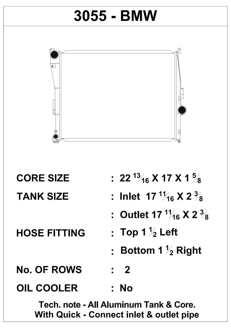 The CSF #3055 Cooling product is designed to be a “Drop-In Fit” applications. The product will install in the OEM Location with no modifications necessary unless otherwise noted or instructions are included in the product package. Please see the manufacturer repair manual for standard installation instructions. If you do not feel confident installing this product CSF recommends taking it to a qualified installation facility.