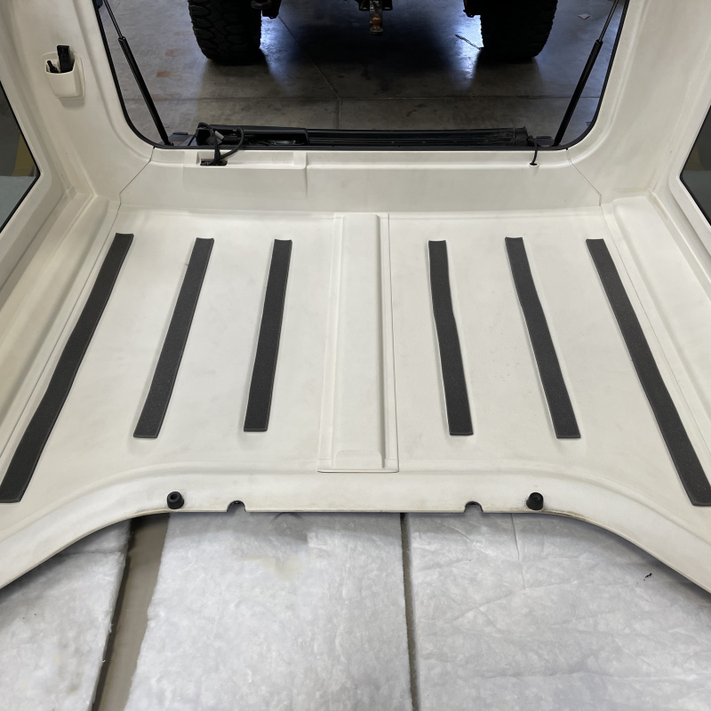 Riding in a Jeep(R) is great fun except for the truck’s propensity for interior noise that makes it difficult to engage in conversations or even enjoy vehicle audio systems. Now there is an easy solution. Boom Mat’s new Jeep(R) Wrangler Sound Deadening HeadLiner provides a simple pre-shaped peel and stick kit that dresses up the interior of Jeep hard tops while minimizing annoying outside noise and vibrations while insulating from exterior weather conditions. Installed Boom Mat’s new Sound Deadening HeadLiner has been tested to reduce noise levels from 3 to 4 decibels. This is a significant change in sound level that will improve overall interior acoustics so Jeep occupants can enjoy audio system and have conversations without excessive and irritating noise distractions. Headliner reduces noise levels 3 to 4 decibels Reduces radiant heat from roof Improves acoustics inside A significant change in noise level that will make it easier to have conversations & enjoy your favorite music Open Cell Polyurethane Foam Finish is a Polymer Surface Treatment