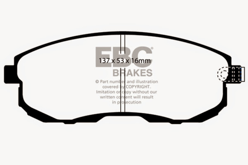 There are TWO reasons our customers love Redstuff, First because they are the lowest dust pad we have encountered by reducing dust by 60-90-percent. Plus the minimal dust you see is very easily removed with a simple sponge wash as it contains no steel fibre particles as in ALL OTHER pads. Second they brake like an alligator right from cold (as good as Original pads or better) and just get better as they heat up.This material is a Synthetic Fiber based brake compound enhanced with ceramic particles. If you have previously tried EBC redstuff (pre-ceramic compound) this material is light years ahead. It lasts longer; it brakes better and is quieter. Being a hard wearing pad, bed-in times can be as long as 1000 miles and drivers must be patient until the pad takes up the shape of their disc (brake rotor). This is a truly impressive fast road pad for repeated heavy braking.It emits far less dust than semi-metallic pads and has been proven to stop a passenger car/sedan/sport compact/hot hatch 13 metres quicker than OEM pads from 100mph/160kph. Features EBC Brake-In surface coating which conditions rotor surface and accelerates pad bed-in. Nominal friction coefficient 0.5 with approx. 50-percent dust reduction.Most EBC Red Ceramic pads are approved to ECE R90 brake safety regulation.
