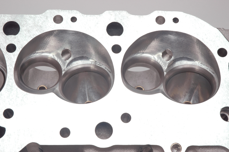 Edelbrock and Pat Musi Performance have combined efforts to produce the finest standard intake port location big-block Chevy head available. The Edelbrock #61419 Victor 24deg CNC Bare cylinder head features an extra thick deck and extra material in the spring pockets for a heavy-duty casting that can be used with high-lift cam and heavy spring combinations. Edelbrock equips the complete cylinder head with Manley dual-spring valve springs and titanium retainers good for up to .880″ lift. The port designs are large oval (367 lh / 377 rh) that produce impressive flow – out-of-the-box. The exhaust port exits are raised .750″ to greatly improve exhaust flow and power. Off the shelf large oval-port intakes are available through Edelbrock.