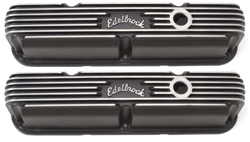 Edelbrock part #41763 Classic Series Valve Covers are designed for Chrysler Small-Block LA 318-340-360 applications and have a Black finish. Edelbrock first made these aluminum valve covers in the late ’50s and they’re still a classic. Made of heavy-gauge sand-cast aluminum, Overall height is measured from base to top at the highest point. Edelbrock classic valve covers can be machined to accept breathers if desired.
