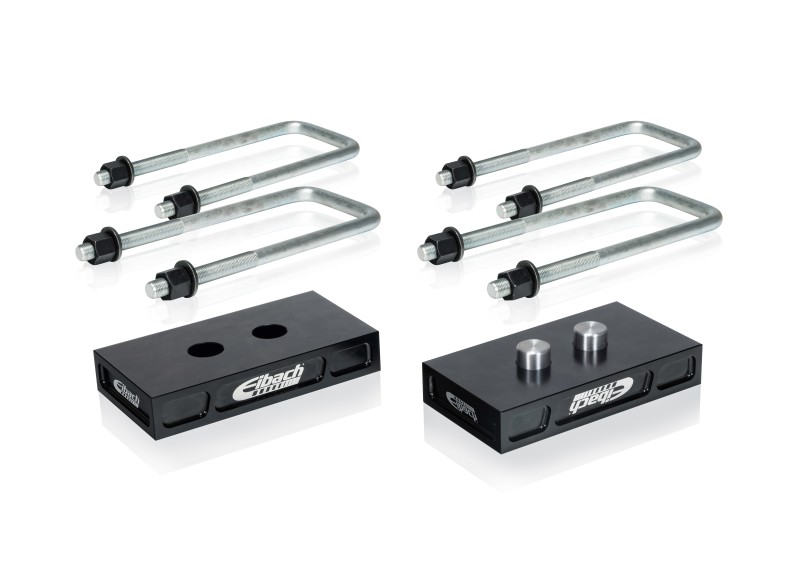 The Eibach Lift Block system is designed to increase the lift on solid-axle trucks that use leaf spring suspension. The Lift Block system consists of a pair precision machined from 6061-T6 billet aluminum blocks, a set of U bolts to secure them to the axle, and bump stop spacers (when necessary). Available in 1″ and 1.5″ lift heights, Lift Blocks are the perfect complement to your PRO-TRUCK COILOVER or PRO-TRUCK-LIFT system.