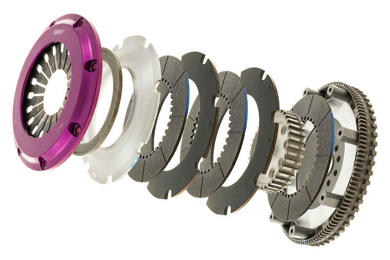 EXEDY carbon discs are able to perform through long durations of high rotational velocity due to our precise application of carbon. Carbon material also possesses a ”non-stick” characteristic that eliminates disengagement problems. Available in single, twin and triple designs with both rigid or damper discs for a full range of power holding capacity. Carbon-D: The next generation of clutch systems by EXEDY is the Hyper Carbon-D carbon clutch system. Carbon-D was developed to achieve the ultimate goal of comfort and streetability by absorbing noise and vibration from drivetrain such as the differential, transmission and engine. The Carbon-D system is designed to protect the drivetrain by absorbing and dissipating ”shock torque” by utilizing EXEDY Patented Technology. Superior engineering enables the Carbon-D clutch system to posses an ideal clutch engagement position, increased clamp loads and lower pedal effort, while the unique carbon fiber friction material allows comfortable half-engaged clutch operation and responsive gear changes. The EXEDY Hyper Carbon-D is available in both single and twin clutch configurations. Low Inertia Design: The weight of a carbon clutch disc is one third that of a metallic disc. Utilizing a high friction coefficient Hyper Carbon disc which allows for quicker shift response. Low inertia discs allow the transmission to synchronize in a shorter space of time eliminating time loss during shift changing while also reducing the applied load to the synchronizer. Easy to Handle: Semi-carbon clutches offer lightweight, high heat resistance and a stable friction coefficient. EXEDY carbon clutches are tuned so that at a lower temperature, engagement feeling is improved and conversely at high temperatures, engagement is ideal for spirited driving. All EXEDY Racing Hyper Carbon Series Clutch Kits carry SFI 1.2/1.5 Certification. Which means, when you buy these products you can be confident they are certified for use in competitive motorsports.