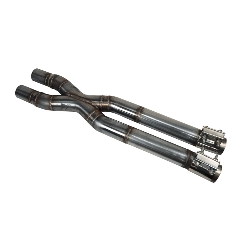 These Ford Racing X-Pipes convert your factory H-pipe into a more efficient X-pipe. They require cutting the factory exhaust for installation, and clamp on with no welding required! Made of stainless steel, these pipes will give you years of great performance.