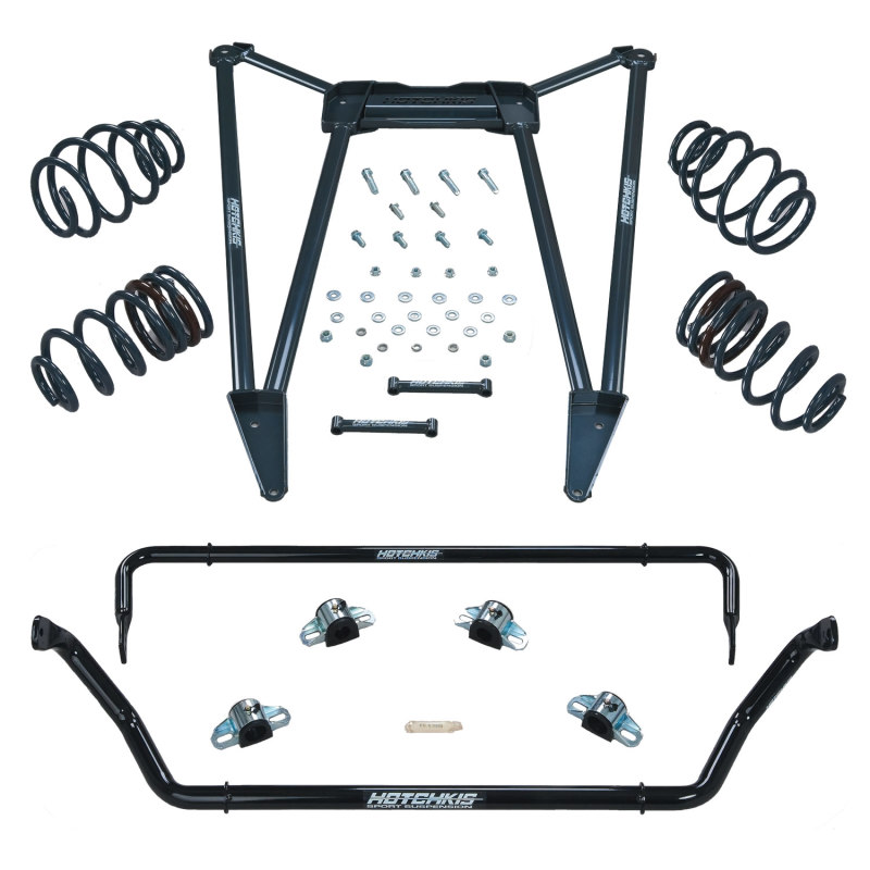 The Hotchkis Sport Suspension Track Pack for the 2010 Camaro offers a sleek lowered stance dramatically improved handling and superior driver control. Our engineers poured over track testing data to develop a balanced handling system that is comfortable enough for the street but well balanced for the occasional track day or your favorite twisty road. The system includes Sport springs that lower ride height 1-inch with a higher rate for superior performance paired with front and rear lightweight adjustable sway bars and a unique aluminum chassis brace manufactured out of elliptical aluminum tubing for superior strength and ground clearance. All components are manufactured in the USA come with complete hardware greasable bushings and are finished off in a durable powdercoat finish. This bolt on upgrade can transform your Camaro into a canyon carver in minutes. Features: Tuned Balanced System combines sport springs adjustable sway bars and aluminum chassis bracing Sport Coil Springs Front 210lbs/in Rear 440 lbs/in 1 in. Lowered Stance Lightweight 1.25 in. tubular front and 1 in. adjustable rear sway bars. Includes greasable polyurethane bushings and mounts. Strong lightweight aluminum chassis brace reduces sub-frame flex and wheel hop. Durable gloss powder coat finish. Direct bolt- on installation Benefits: Reduces body roll improving handling performance and drivability. Reduced sub frame flex and wheel hop. Sleek lowered stance with sporty yet comfortable ride Improves steering response and cornering ability. Allows suspension tuning for optimum track or street performance. Contains all necessary mounting and bushings Bolt-In installation no vehicle modifications Applications: 2010 Camaro SS. Note: Springs are designed for use on V8 models only.