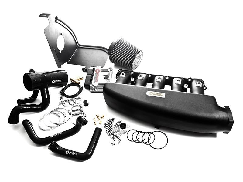 TRANSFORM YOUR 2.5L ENGINE Unlock your VW 2.5L 5 cylinder engine’s full power potential with a complete bolt-on IE 2.5L Power Kit. Everything needed to add 40+HP using the IE Performance Intake Manifold and matching 2.5L Stage 2 Software. Available with or without the matching direct-fit IE Cold Air Intake Kit. Does not fit hydro steering cars, check fitment for more information. LEADING FEATURES Direct bolt-on kit provides massive power gain Increased rev limit with power all the way to redline Includes IE Performance Intake Manifold Includes IE Stage 2 Manifold Software Install & tune in your own driveway Removed speed limiter, improved response, no rev hang Optional direct-fit IE cold air intake kit (ultimate kit) INCLUDED IN ULTIMATE POWER KIT IE 2.5L performance intake manifold IE Stage 2 manifold software IE PowerLINK tuning cable IE manifold cold air intake kit INCLUDED IN BASIC POWER KIT IE 2.5L performance intake manifold IE Stage 2 manifold software IE PowerLINK tuning cable ADD POWER & A MASSIVE POWER BAND The IE 2.5L Power Kit combines the industry-leading IE performance intake manifold and the IE ECU software tune, this combination maximizes the performance of the factory 5 cylinder engine’s potential without adding boost or engine internals. IE Stage 2 software fine-tunes the ECU calibration to match the manifold flow characteristics delivering a higher revving power band and power gains over 40HP & 12TQ (ft-lbs) over stock. EASY AT-HOME TUNE INSTALL Required to flash your new tune, IE’s DIY Flash Tool allows you to quickly upload your tune from your own garage or driveway. This OBD plug-in device is easy to use with a Windows-powered laptop and WiFi connection. Your new tool also includes the abilities to switch between multiple octane files (available separately), reading and clearing diagnostic codes, upgrading Stages, or flashing back to stock. IE COLD AIR INTAKE KIT Included in Ultimate Power Kits, the IE 2.5L cold air intake kit is designed to make the installation of your new Integrated Engineering 2.5L 5 cylinder intake manifold simple with our direct-fit intake kit. This kit will connect your throttle body to your mass airflow sensor, and place the air filter right behind the driver’s side headlight in a partitioned area that only sees fresh airflow. Our specially-made high flow intake pipe features provisions for the valve cover breather, block breather, and SAI pump, so nothing is left unplumbed. The larger IE intake manifold moves the location of the throttle body, factory or other manufacturer cold air intakes will not fit directly and will require modifications to fit. Take this into mind when purchasing a 2.5L Basic Power Kit. FITMENT RESTRICTIONS POWER STEERING This manifold will fit all VW 2.5L engines with the electric power steering system. Some later style engines use a hydraulic power steering pump, which sits right below the factory intake manifold. If your car is equipped with a hydraulic power steering pump, this manifold will not fit. AUTOMATIC TRANSMISSION TUNE REQUIRED Automatic vehicles require a matching IE TCU Transmission tune to allow high revving of the automatic transmission. The stock automatic tune has internal transmission rev limit controllers that shift before the manifold and software can make the extra power gained through the upgrade. IE’s Auto Transmission Tune removes this limiter allowing full advantage of the manifold & tune. IE PERFORMANCE INTAKE MANIFOLD The IE performance manifold has been designed from the bottom up to bring your 2.5L engine to life! IE’s performance engineered manifold is the only motorsport designed intake manifold available with precisely tuned runner lengths and diameters. This creates a resonance effect which rams more air into the cylinders. The plenum and runner designs have been carefully optimized with computer software for maximum flow, allowing your engine to breathe easier and perform at its best. IE STAGE 2 MANIFOLD SOFTWARE The IE Stage 2 performance flash for VW 2.5L engines is designed specifically to re-calibrate the naturally aspirated 2.5L engine for use with the IE intake manifold. That is to not only provide more horsepower and torque, but make the driving experience more enjoyable by removing rev hang, increasing throttle response, and increasing the rev limiter. With such a significant power increase, it makes the vehicle much more enjoyable to drive, with plenty of power available until red line. NO MODIFICATION FITMENT The Integrated Engineering 2.5L ultimate power kit has been carefully designed to fit MK5 07K engines while retaining all of your factory components. Through extensive research and development, this intake manifold fits with no modifications to the engine bay, vacuum system, emissions systems, fuel system, or coolant system. With the plenum being larger than factory, the throttle body placement is moved a small amount, which is easily plumbed to your mass air flow sensor using the included 2.5L manifold air intake kit. INCREASED PLENUM VOLUME This plenum on this manifold has been generously sized and shaped to distribute airflow as evenly as possible to all 5 cylinders. The increased internal volume is a massive improvement over the factory piece and ensures a steady supply of air for the engine. FLOW TUNED RUNNER DESIGN By using a cast aluminum construction manifold, our engineers are able to properly size and shape the manifold runners and velocity stacks for optimal performance. This runner flow and resonance tuning is a huge contributor to the overall performance of the intake manifold and is not possible to achieve on hand-welded manifolds generally available for this platform. Featuring aggressively sized runners that have been optimally tuned for large power increases throughout the mid-high RPM band. Our engineers employ CFD software to research and develop an optimized runner and bellmouth design, after many revisions to the design they have achiev