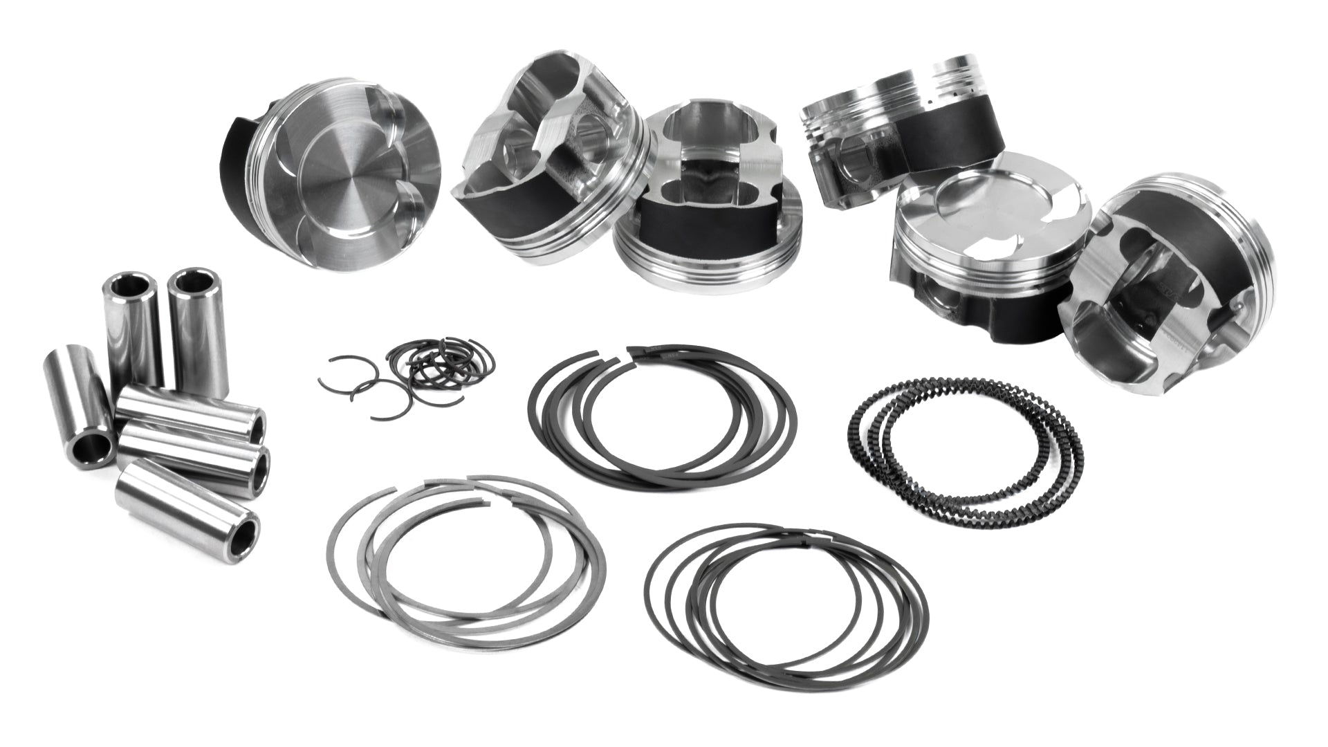 iE SPEC JE Forged Pistons To complement the strength of our iE Tuscan I-Beam connecting rods for the Audi B9 3.0T EA839 engine, we have collaborated with the experts at JE Pistons to produce an equally robust forged piston set. Combination tested for up to 1000ft-lbs of torque, your iE connecting rod and JE Piston combo will offer unparalleled bottom-end strength for your high-boost build. LEADING FEATURES Complete set of six pistons with pin locks, Pro Seal rings, and wrist pins iE Spec forged piston designed for high-power EA839 builds Direct fit for iE Tuscan 155X22MM connecting rods Includes JE trademarked tuff-Skirt coating for long life Massive 22mm wrist pin sizing for reliability under high boost pressures Drop-in factory bore sizing for stock cylinders TECHNICAL SPECS Bore: 84.5MM (stock) Wrist pin diameter: 22mm Material forging: 983M Average weight: 307 grams OPTIMIZED COMPRESSION RATIO Extensive in-house testing has revealed that the factory piston compression ratio in the EA839 3.0T engine is susceptible to excessive knock in very large turbo/high-boost builds. In response, we have custom spec our own lowered 10:1 compression ratio. This compression has proven to reduce cylinder pressures safely without going so low to affect engine responsiveness. This compression ratio will also work well with the complexity and precision of the direct injection system when tuning your large turbo high-boost build. HIGH-PERFORMANCE PISTON JE has manufactured a strong, light piston forging for extreme operating conditions in high-powered, high-boost, and professional motorsport competition. This high-performance alloy is suited for iE connecting rods, tolerating acceleration forces of more than 8000 Gs and directional changes exceeding 200 times a second! The piston dish and dome design have been specifically engineered for the Audi B9 turbocharged 3.0L engine, with special care taken to provide properly placed valve reliefs for smooth-flowing combustion characteristics. LEADING QUALITY CONTROL JE Pistons is a leader in piston manufacturing and quality control. Each piston forging is verified in a dedicated manufacturing cell, resulting in tighter tolerances in 14 critical areas. An in-depth 23-point quality inspection is performed in an environmentally controlled lab maintained at 68 degrees with 40% relative humidity. This ensures consistent and exact measurements and guarantees dimensional conformity. ENGINE FITMENT Audi S4 2017-2024 (B9) EA839 3.0T Audi S5 2017-2024 (B9) EA839 3.0T Audi SQ5 2018-2024 (B9) EA839 3.0T