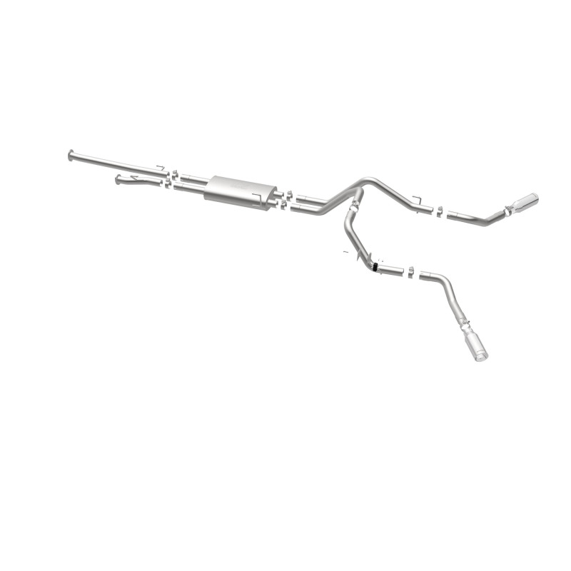 The MagnaFlow 2009-2021 Toyota Tundra Street Series Cat-Back Performance Exhaust System 19232 brings out the personality of your 4.6L, 4.7L, 5.7L 2009-2021 Toyota Tundra with our signature resonant, powerful engine tone and dyno-proven performance. Thanks to its fast-flowing, mandrel bent 2.5in. main piping and 1 Straight-Through mufflers ending in a Dual Split Rear Behind Rear Tires exit with 4in. Polished Clamp-On Double Wall Angle Cut Rolled Edge tips, this Toyota Tundra exhaust kit has the performance chops to match its sporty sound and appearance. Upgrade your ride to the next level with an exhaust that has the pipes to put other Toyota Tundra’s to shame. With this system your vehicle will be producing Aggressive exterior and Moderate interior sound levels while leaving other cars and trucks feeling envious at every stoplight. Exhaust kit 19232 features a cat-back layout that replaces your ride’s stock exhaust components from near the catalytic converter on back. Extensive 3D scanning during development has resulted in a direct-fit design that you can easily install yourself. 19232 is produced using CNC precision robotic manufacturing techniques and is backed by MagnaFlow’s 1-year limited finish warranty and limited lifetime construction warranty.