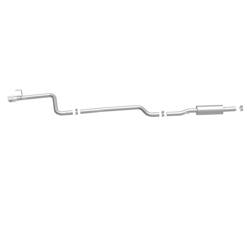 The MagnaFlow 2016-2019 Chevrolet Cruze Street Series Cat-Back Performance Exhaust System 19269 brings out the personality of your 1.4L 2016-2019 Chevrolet Cruze with our signature resonant, powerful engine tone and dyno-proven performance. Thanks to its fast-flowing, mandrel bent 2.5in. main piping and 1 Straight-Through mufflers ending in a Single Straight Driver Side Rear exit with 3.5in. Polished Welded-On Double Wall Angle Cut Folded Edge tips, this Chevrolet Cruze exhaust kit has the performance chops to match its sporty sound and appearance. Upgrade your ride to the next level with an exhaust that has the pipes to put other Chevrolet Cruze’s to shame. With this system your vehicle will be producing Moderate exterior and Mild interior sound levels while leaving other cars and trucks feeling envious at every stoplight. Exhaust kit 19269 features a cat-back layout that replaces your ride’s stock exhaust components from near the catalytic converter on back. Extensive 3D scanning during development has resulted in a direct-fit design that you can easily install yourself. 19269 is produced using CNC precision robotic manufacturing techniques and is backed by MagnaFlow’s 1-year limited finish warranty and limited lifetime construction warranty.