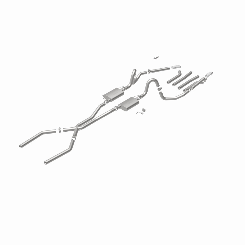 The MagnaFlow Street Series Crossmember-Back Performance Exhaust System 15893 brings enhanced engine sound and dyno-proven performance to your muscle car with a healthy helping of our deep, resonant signature exhaust note at Moderate exterior and Mild interior sound levels. Thanks to its durable, corrosion resistant stainless steel design, this exhaust system will handle whatever tarmac you decide to leave your mark on. This performance exhaust kit features a crossmember-back layout designed to replace your exhaust system from the crossmember on back. With its fast-flowing, mandrel bent 2.5in. main piping and 2 Straight-Through mufflers ending in a Multiple Exit Options exit with 2.75in. Polished Weld-On Single Wall Turndown Cut Edge tips, your muscle car will be sounding as awesome as it looks. Extensive 3D scanning during development has resulted in a direct-fit design that you can easily install yourself. 15893 is produced using CNC precision robotic manufacturing techniques and is backed by MagnaFlow’s limited lifetime construction warranty.
