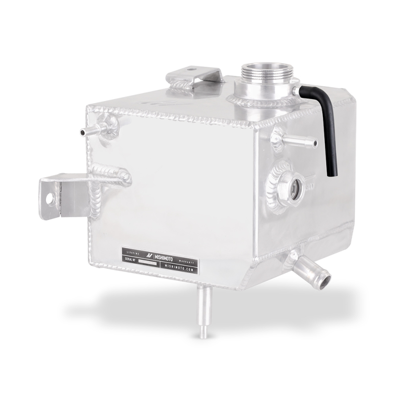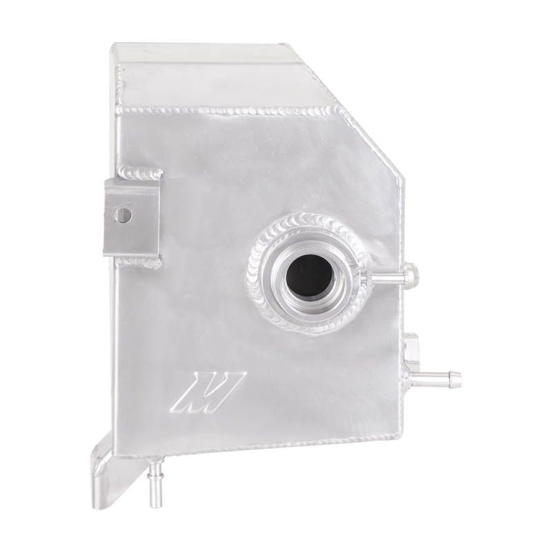 It’s only been four years since the first Ford Ranger 2.3L EcoBoost rolled off the assembly line, but those four years have been rough on some of the plastic parts under your Ranger’s hood. Your coolant expansion tank is probably beginning to show its age thanks to thousands of heating and cooling cycles bathed in orange or pink coolant. It’s likely developed that classic dingy yellow tone, and it may be hard to see the coolant level through the side of the tank that gets more opaque by the day. Soon enough, that plastic expansion tank will become brittle, and one misplaced elbow or especially deep pothole has the potential to start a cascade of coolant. Luckily, Mishimoto’s 2019+ Ford Ranger all-aluminum expansion tank is built to last a lifetime.—-Our Ford Ranger EcoBoost expansion tank is constructed from aircraft-grade aluminum and precision TIG-welded to create a durable expansion tank that can withstand thousands of heat cycles and high pressures without cracks or leaks. On the outside, we’ve included a high-visibility sight glass and stamped cold-fill line to make checking your coolant level easy, while the available micro-wrinkle black powder coated or polished finishes suit any style. Our fill neck also accepts the stock expansion tank cap to keep maintenance easy. Inside, baffles keep coolant cycling into the engine, no matter how steep the road or trail gets.—-Like all of our products, this aluminum expansion tank for your 2019+ Ford Ranger 2.3L EcoBoost is backed by our Mishimoto Lifetime Warranty for a lifetime of durability and worry-free running.