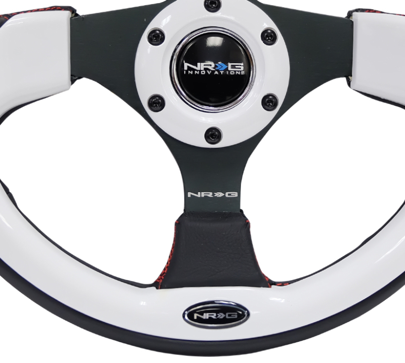 NRG Reinforced Steering Wheel (320mm) Blk w/White Trim & 4mm 3-Spoke quantity