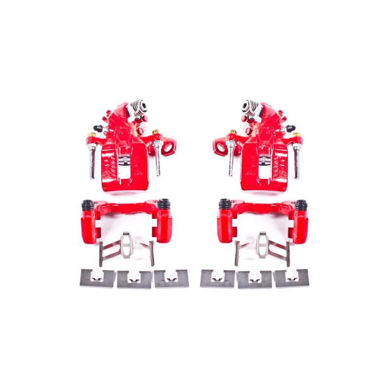 PowerStop Brake Calipers are made specifically with the enthusiast in mind. These calipers bolt directly in place of the stock calipers, and they look and perform great behind stock or custom wheels. PowerStop calipers and the brackets are remanufactured in our Chicago, IL facility and treated with a electrostatic high-temperature red powder-coating. The easy to clean powder coating helps to resist rust and corrosion thus extending the life of your calipers. PowerStop calipers are 100% pressure tested to verify piston operation and prevent any possible leaks from occurring. This ensures that every caliper is inspected for quality and safety. PowerStop caliper pairs are expertly assembled using new seals, caliper guide pins, dust boots, bleeder screws, stainless steel brake pad abutment clips and mounting brackets. Our manual parking brake calipers are provided as a complete assembly to include all adjusting hardware, actuating levers, return springs, clips and bolts. High temperature EPDM rubber dust boots and premium silicone lubricant is used for a smoother operation and an extended life in extreme conditions. The color is a nice touch that really stands out behind your wheels!