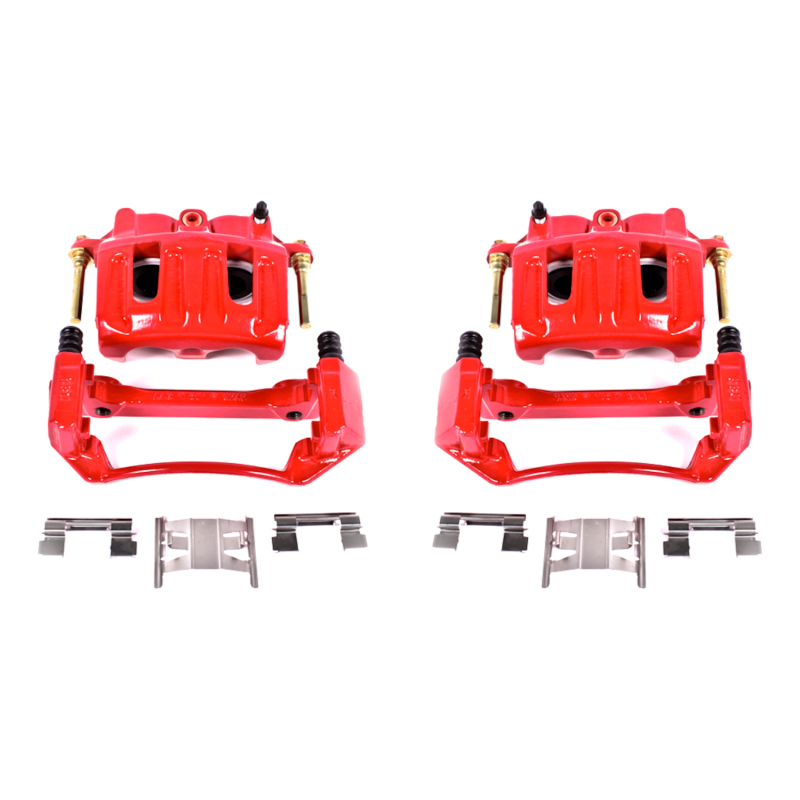PowerStop Brake Calipers are made specifically with the enthusiast in mind. These calipers bolt directly in place of the stock calipers, and they look and perform great behind stock or custom wheels. PowerStop calipers and the brackets are remanufactured in our Chicago, IL facility and treated with a electrostatic high-temperature red powder-coating. The easy to clean powder coating helps to resist rust and corrosion thus extending the life of your calipers. PowerStop calipers are 100% pressure tested to verify piston operation and prevent any possible leaks from occurring. This ensures that every caliper is inspected for quality and safety. PowerStop caliper pairs are expertly assembled using new seals, caliper guide pins, dust boots, bleeder screws, stainless steel brake pad abutment clips and mounting brackets. High temperature EPDM rubber dust boots and premium silicone lubricant is used for a smoother operation and an extended life in extreme conditions. The color is a nice touch that really stands out behind your wheels!