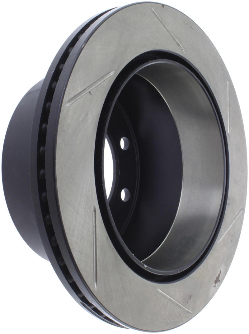 StopTech Slotted Sport Rotors are 1-piece direct replacement brake discs for factory brake systems and stock calipers that look great behind your wheels a** and offer significantly improved braking performance. The unique slotting aids with heat and brake dust dispersal, prevents glazing of the pads, adds bite and improves wet and dry braking performance. Built to last, the black e-coating provides protection from corrosion and the high carbon metallurgy (in most applications) offers quieter operation, better crack resistance and increased performance.