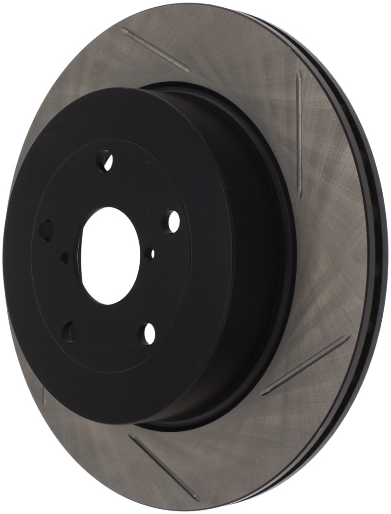 StopTech Slotted Sport Rotors are 1-piece direct replacement brake discs for factory brake systems and stock calipers that look great behind your wheels a** and offer significantly improved braking performance. The unique slotting aids with heat and brake dust dispersal; prevents glazing of the pads; adds bite and improves wet and dry braking performance. Built to last; the black e-coating provides protection from corrosion and the high carbon metallurgy (in most applications) offers quieter operation; better crack resistance and increased performance.