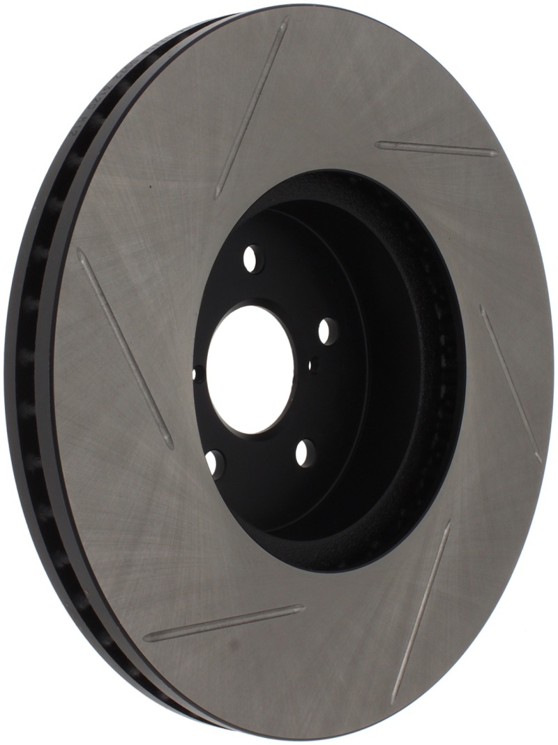 StopTech Slotted Sport Rotors are 1-piece direct replacement brake discs for factory brake systems and stock calipers that look great behind your wheels a** and offer significantly improved braking performance. The unique slotting aids with heat and brake dust dispersal; prevents glazing of the pads; adds bite and improves wet and dry braking performance. Built to last; the black e-coating provides protection from corrosion and the high carbon metallurgy (in most applications) offers quieter operation; better crack resistance and increased performance.