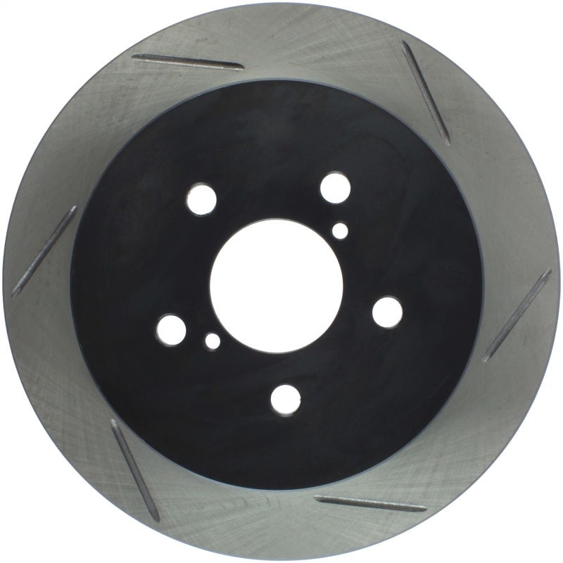 StopTech Slotted Sport Rotors are 1-piece direct replacement brake discs for factory brake systems and stock calipers that look great behind your wheels a** and offer significantly improved braking performance. The unique slotting aids with heat and brake dust dispersal; prevents glazing of the pads; adds bite and improves wet and dry braking performance. Built to last; the black e-coating provides protection from corrosion and the high carbon metallurgy (in most applications) offers quieter operation; better crack resistance and increased performance.