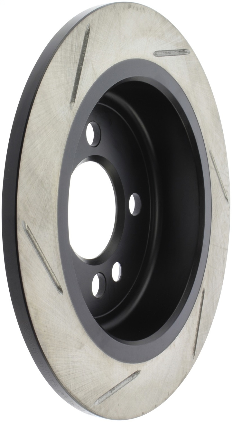 StopTech Slotted Sport Rotors are 1-piece direct replacement brake discs for factory brake systems and stock calipers that look great behind your wheels a** and offer significantly improved braking performance. The unique slotting aids with heat and brake dust dispersal; prevents glazing of the pads; adds bite and improves wet and dry braking performance. Built to last; the black e-coating provides protection from corrosion and the high carbon metallurgy (in most applications) offers quieter operation; better crack resistance and increased performance.