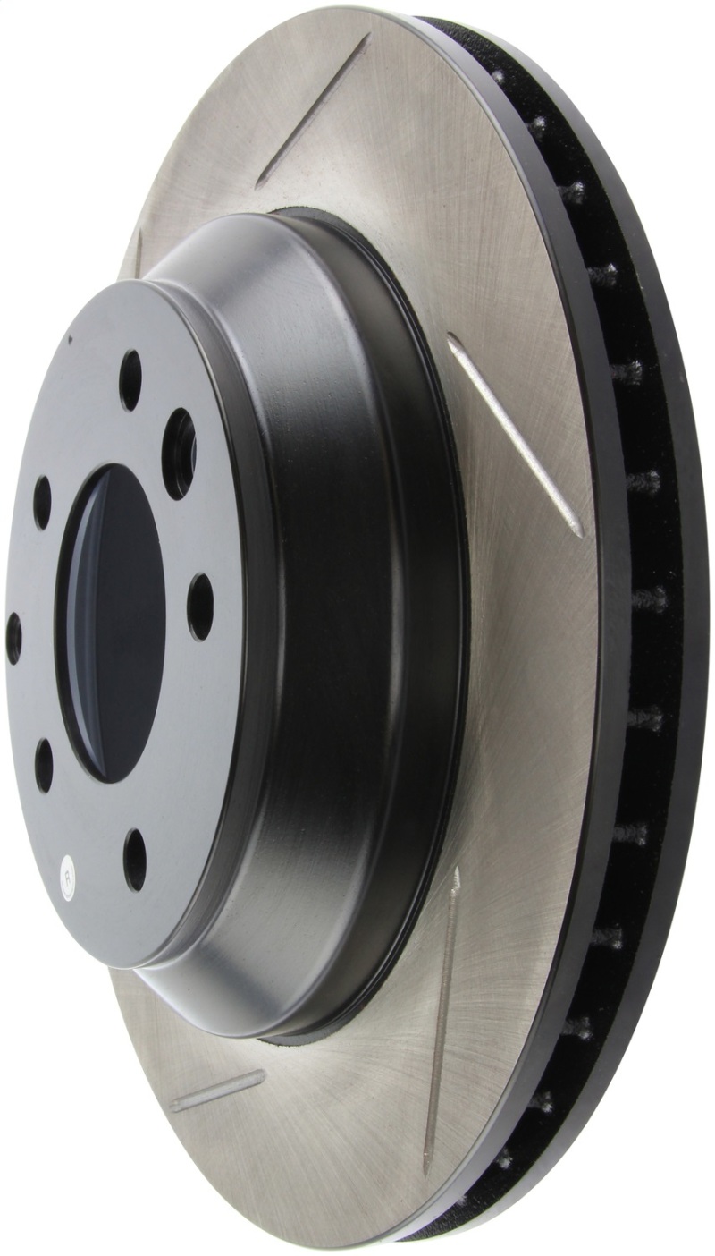 StopTech Slotted Sport Rotors are 1-piece direct replacement brake discs for factory brake systems and stock calipers that look great behind your wheels a** and offer significantly improved braking performance. The unique slotting aids with heat and brake dust dispersal; prevents glazing of the pads; adds bite and improves wet and dry braking performance. Built to last; the black e-coating provides protection from corrosion and the high carbon metallurgy (in most applications) offers quieter operation; better crack resistance and increased performance.