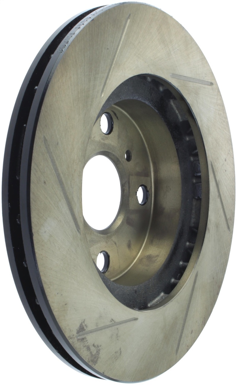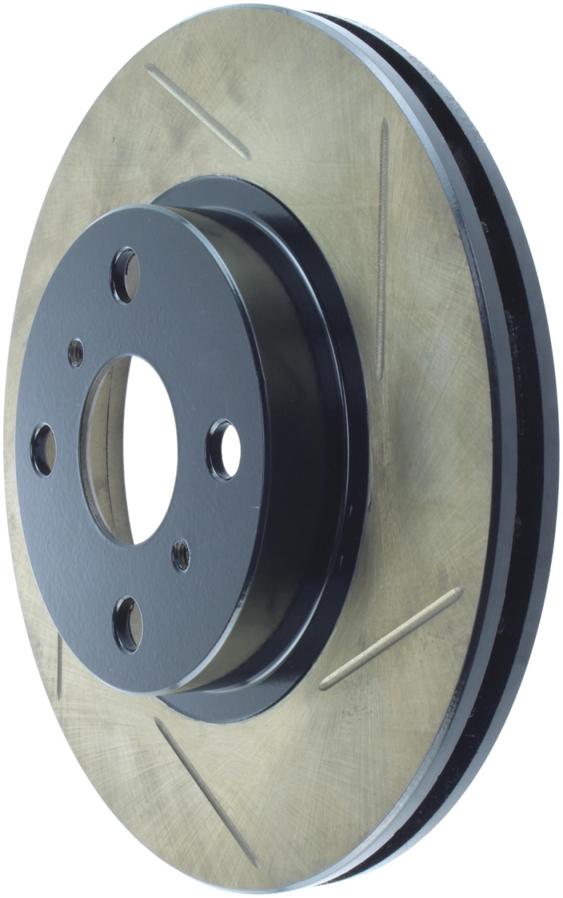 StopTech Slotted Sport Rotors are 1-piece direct replacement brake discs for factory brake systems and stock calipers that look great behind your wheels a** and offer significantly improved braking performance. The unique slotting aids with heat and brake dust dispersal; prevents glazing of the pads; adds bite and improves wet and dry braking performance. Built to last; the black e-coating provides protection from corrosion and the high carbon metallurgy (in most applications) offers quieter operation; better crack resistance and increased performance.