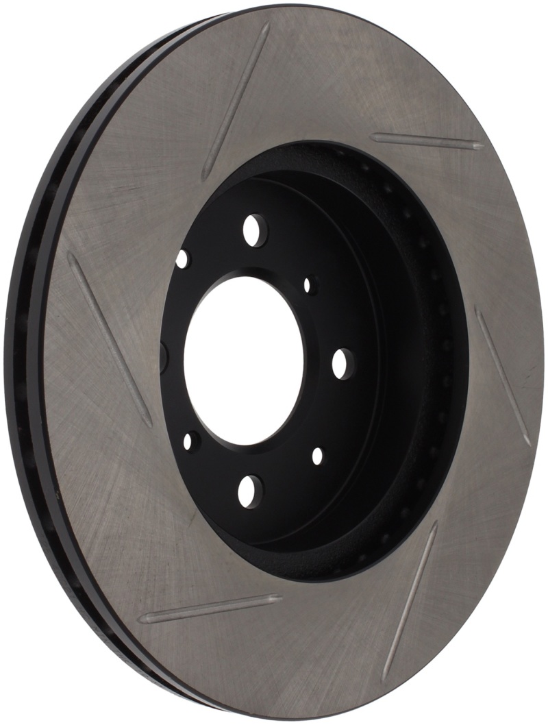 StopTech Slotted Sport Rotors are 1-piece direct replacement brake discs for factory brake systems and stock calipers that look great behind your wheels a** and offer significantly improved braking performance. The unique slotting aids with heat and brake dust dispersal; prevents glazing of the pads; adds bite and improves wet and dry braking performance. Built to last; the black e-coating provides protection from corrosion and the high carbon metallurgy (in most applications) offers quieter operation; better crack resistance and increased performance.