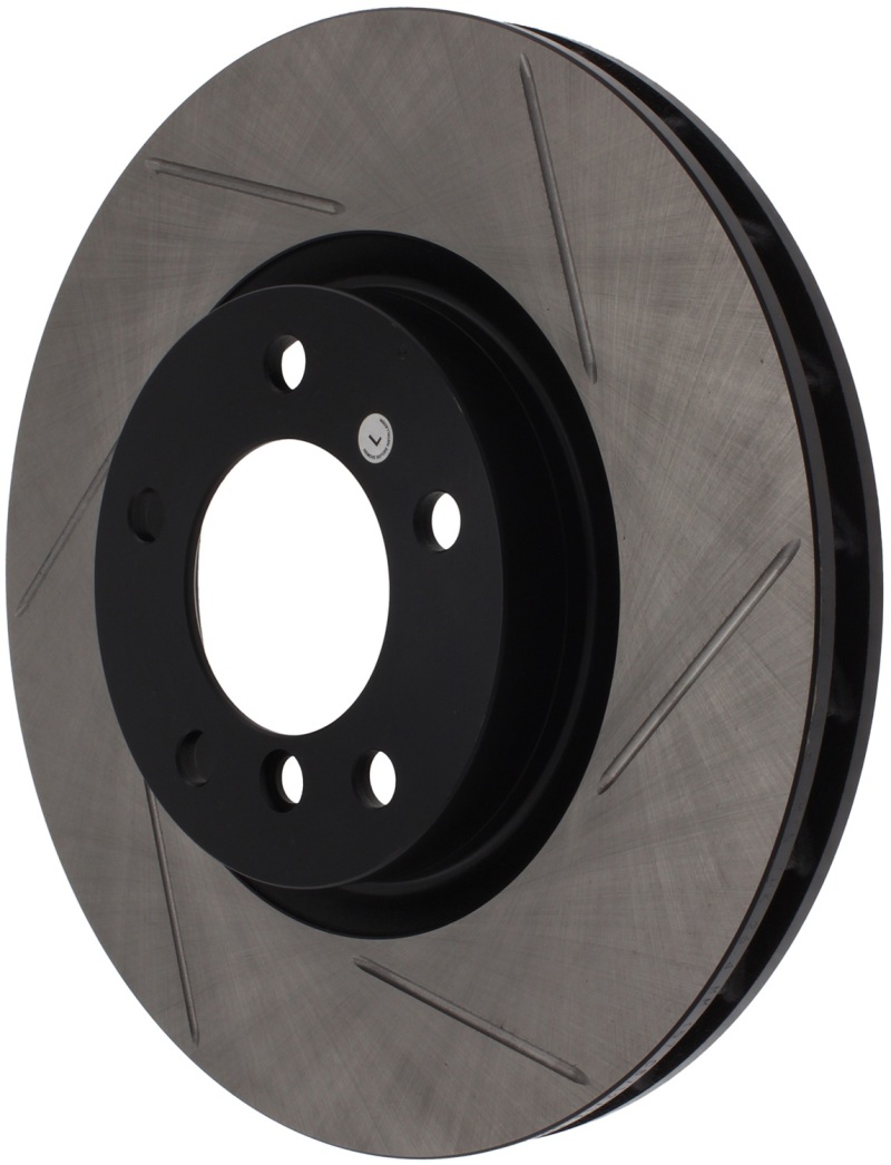 StopTech Slotted Sport Rotors are 1-piece direct replacement brake discs for factory brake systems and stock calipers that look great behind your wheels a** and offer significantly improved braking performance. The unique slotting aids with heat and brake dust dispersal; prevents glazing of the pads; adds bite and improves wet and dry braking performance. Built to last; the black e-coating provides protection from corrosion and the high carbon metallurgy (in most applications) offers quieter operation; better crack resistance and increased performance.