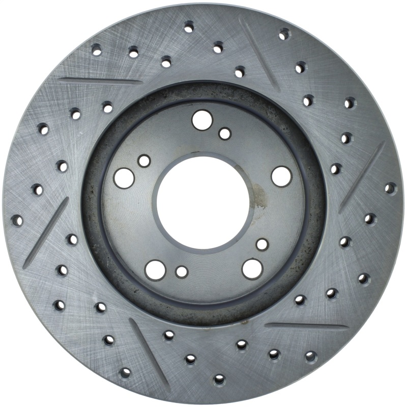 StopTech Drilled and Slotted Sport Rotors are 1-piece direct replacement brake discs for factory brake systems and stock calipers that look great behind your wheels a** and offer significantly improved braking performance. The unique cross-drilling and slotting aids with heat and brake dust dispersal; prevents glazing of the pads; adds bite and improves wet and dry braking performance. Built to last; the black e-coating provides protection from corrosion and the high carbon metallurgy (in most applications) offers quieter operation; better crack resistance and increased performance.
