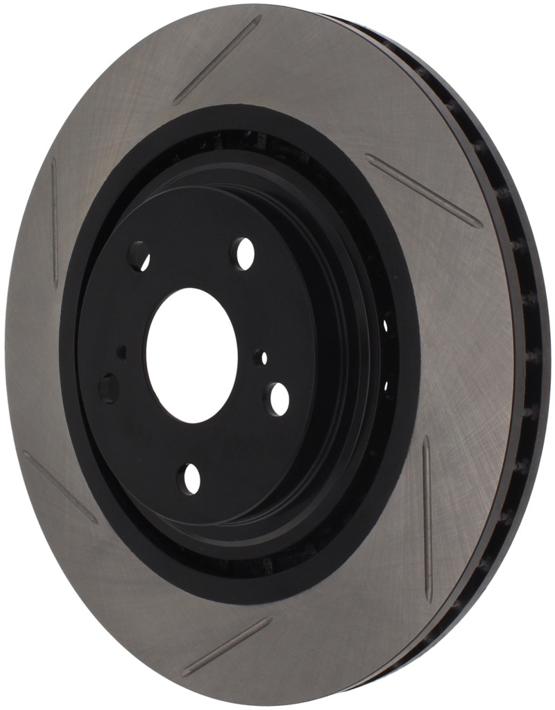 StopTech Slotted Sport Rotors are 1-piece direct replacement brake discs for factory brake systems and stock calipers that look great behind your wheels a** and offer significantly improved braking performance. The unique slotting aids with heat and brake dust dispersal; prevents glazing of the pads; adds bite and improves wet and dry braking performance. Built to last; the black e-coating provides protection from corrosion and the high carbon metallurgy (in most applications) offers quieter operation; better crack resistance and increased performance.