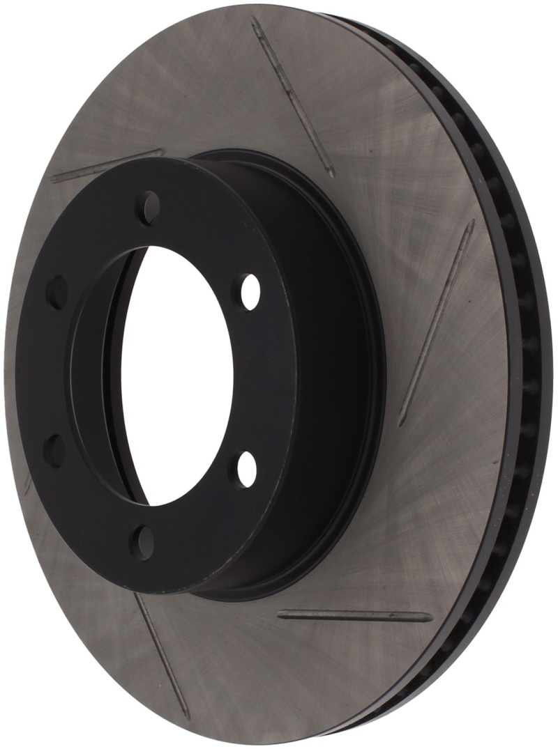 StopTech Slotted Sport Rotors are 1-piece direct replacement brake discs for factory brake systems and stock calipers that look great behind your wheels a** and offer significantly improved braking performance. The unique slotting aids with heat and brake dust dispersal; prevents glazing of the pads; adds bite and improves wet and dry braking performance. Built to last; the black e-coating provides protection from corrosion and the high carbon metallurgy (in most applications) offers quieter operation; better crack resistance and increased performance.