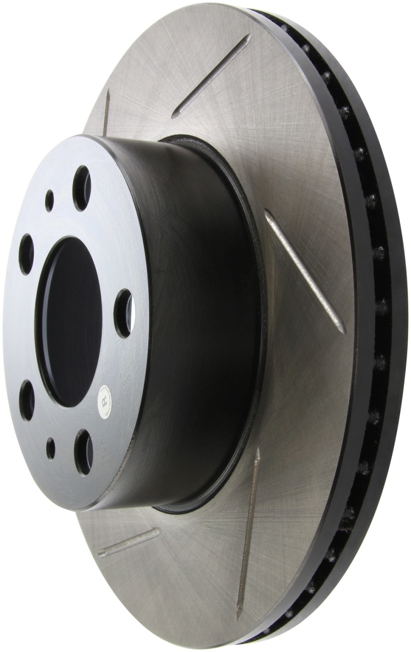 StopTech Slotted Sport Rotors are 1-piece direct replacement brake discs for factory brake systems and stock calipers that look great behind your wheels a** and offer significantly improved braking performance. The unique slotting aids with heat and brake dust dispersal; prevents glazing of the pads; adds bite and improves wet and dry braking performance. Built to last; the black e-coating provides protection from corrosion and the high carbon metallurgy (in most applications) offers quieter operation; better crack resistance and increased performance.