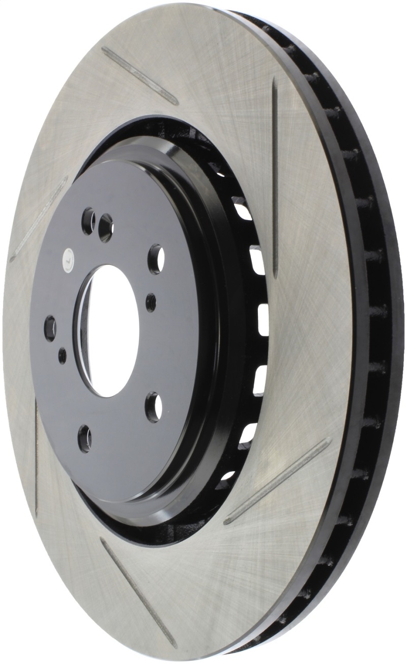 StopTech Slotted Sport Rotors are 1-piece direct replacement brake discs for factory brake systems and stock calipers that look great behind your wheels a** and offer significantly improved braking performance. The unique slotting aids with heat and brake dust dispersal; prevents glazing of the pads; adds bite and improves wet and dry braking performance. Built to last; the black e-coating provides protection from corrosion and the high carbon metallurgy (in most applications) offers quieter operation; better crack resistance and increased performance.