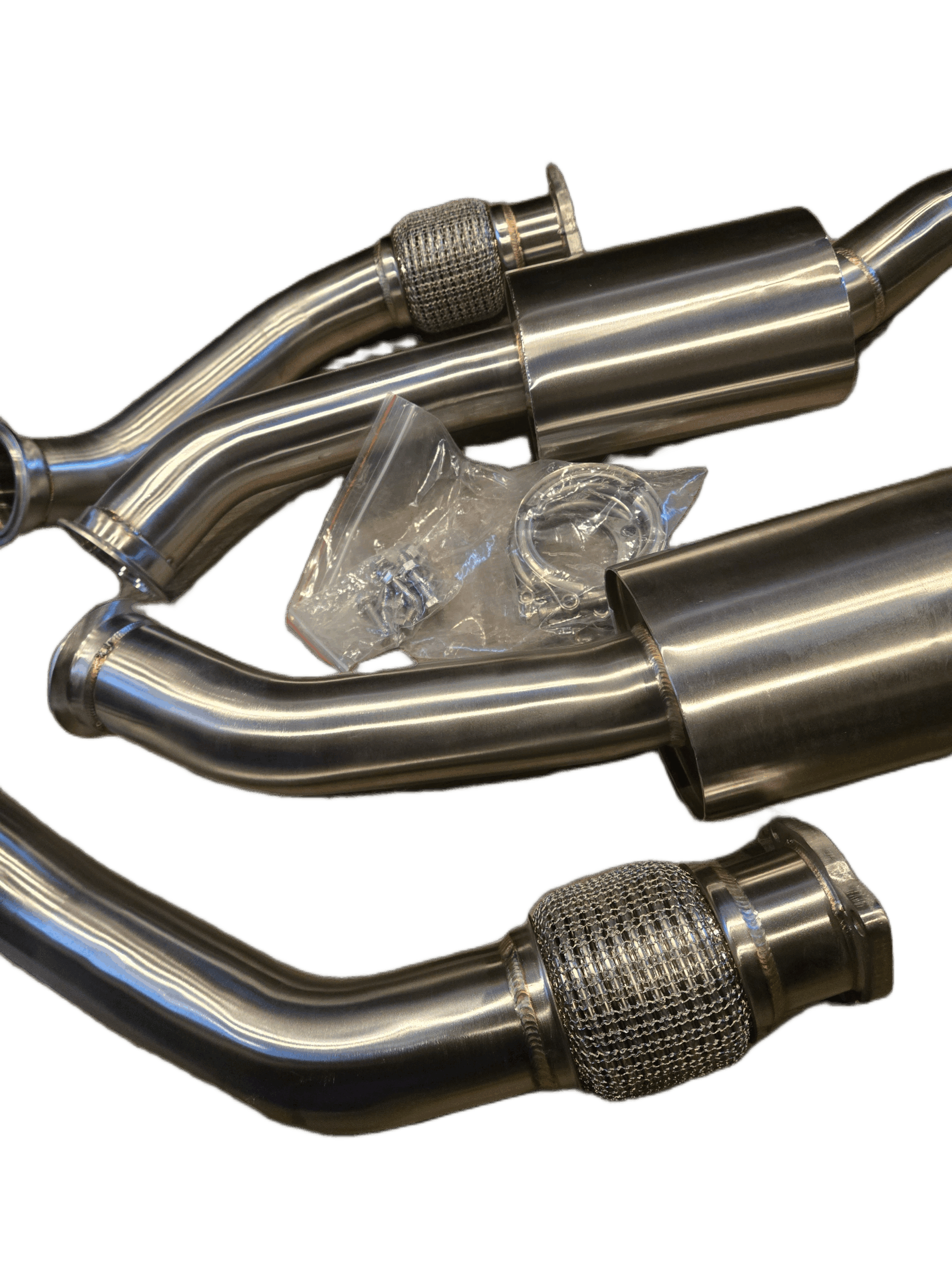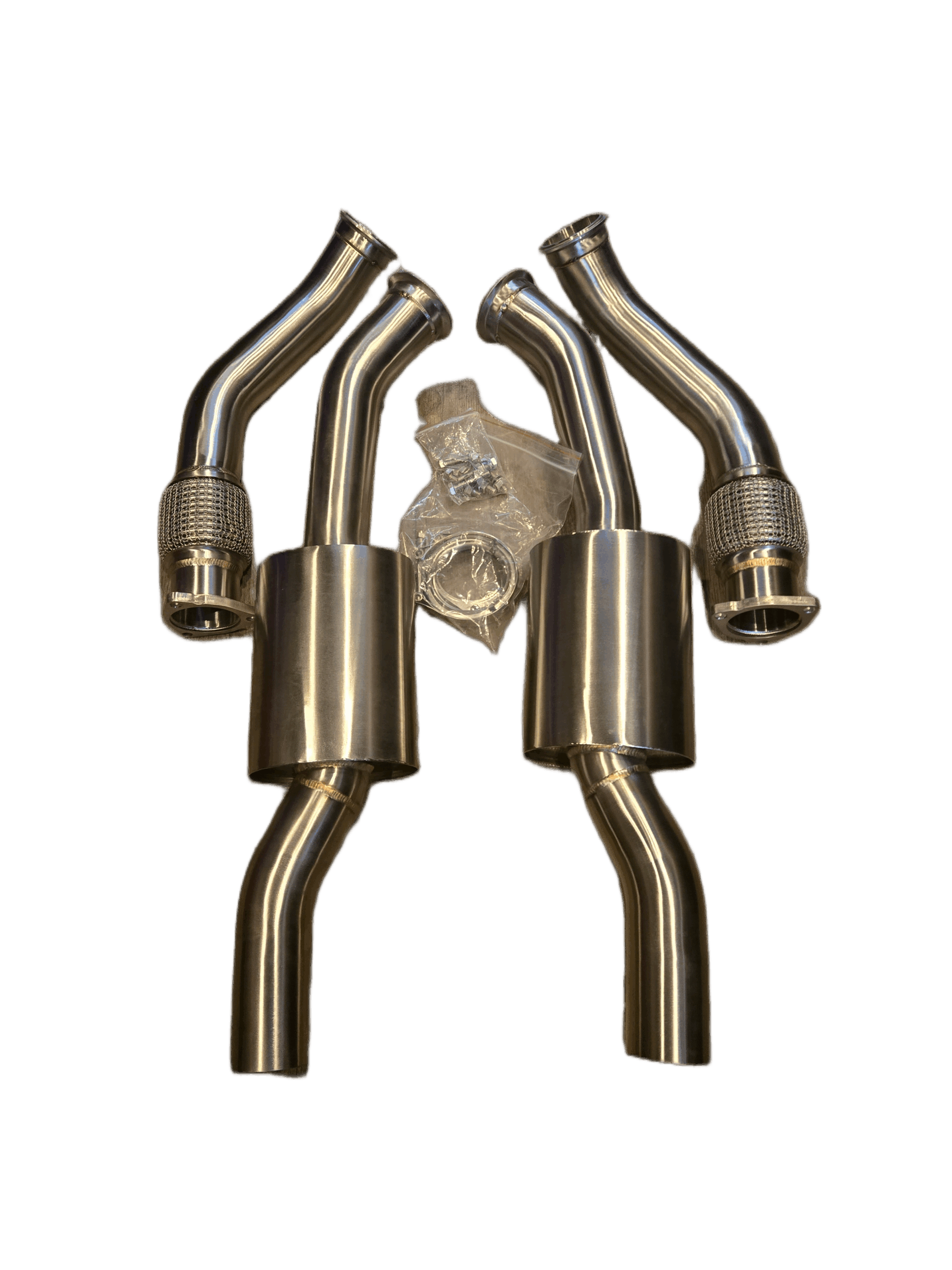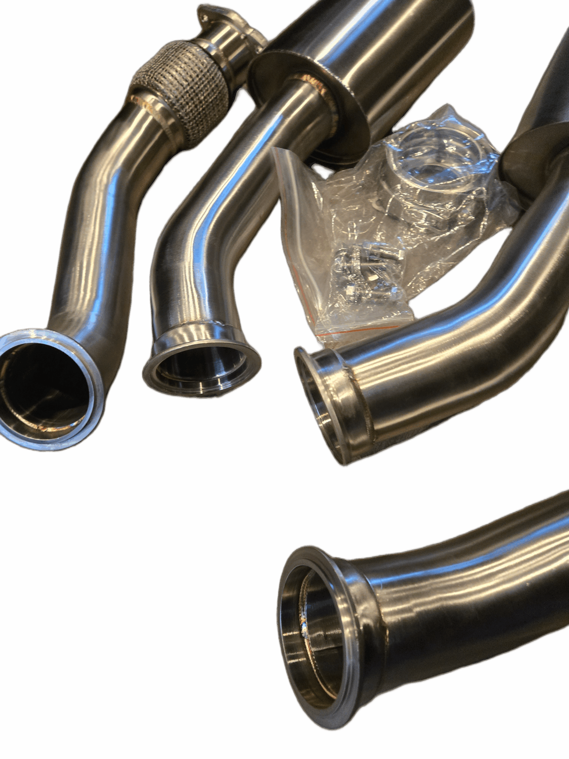 Upgrade your Audi B8 B8.5 S4, S5, SQ5 or C7 C7.5 A6,A7 3.0L supercharged V6 with the Untd. Performance Lower Resonated Downpipes with V-Band. Designed as a direct upgrade to the weak OEM downpipes with fragile flex sections, these high-flow resonated downpipes improve airflow, enhance turbo efficiency, and strengthen the flex for long-term reliability.