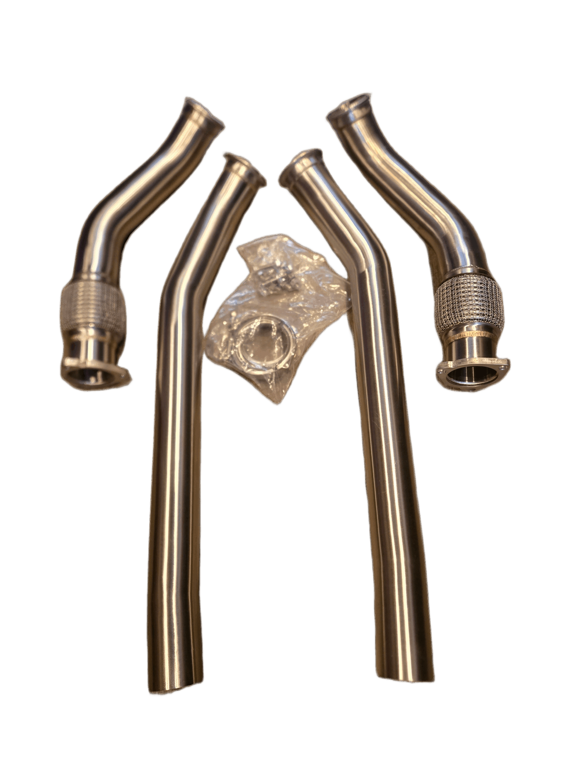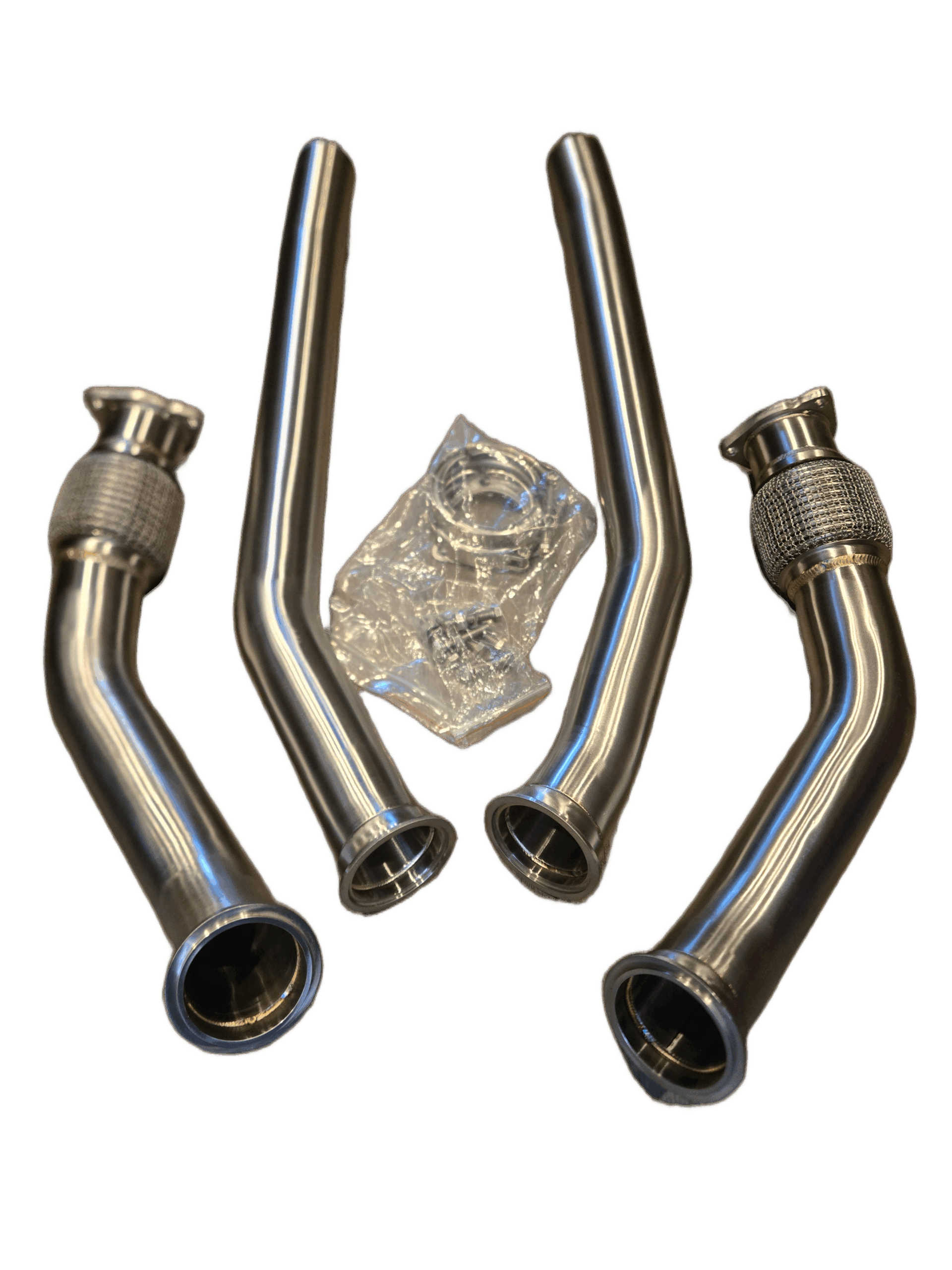 Built from stainless steel with TIG-welded joints and precision V-Band flanges, these downpipes offer leak-free fitment and long-term reliability. The reinforced design eliminates the weak OEM flex section, ensuring durability under high heat and aggressive driving.