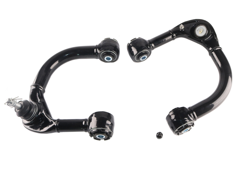 A short fall of the modern day IFS 4wd is the adjustment range provided for successful wheel alignments, this becomes even more of an issue when the vehicle is lifted by more than 1 inch. Not only does the vehicle run into camber and caster issues, but ball joint articulation and clearance issues to the coil over strut at ride and droop height. The new Whiteline offset UCA (Upper Control Arm) is an all-in-one solution for any vehicle that has been lifted between 30mm and 70mm. Providing an increase between +2.5 and +3.5 degrees of caster and up to 1.5 degrees of negative camber increase (figures quoted are based off an approximate 50mm/ 2 inch) along with greater clearance to the coil over strut and more articulation of the arm by virtue of new maintenance free GIIRO bushing technology.