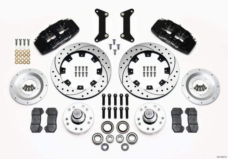 DynaPro 6 forged billet calipers are combined with 12.19a*? diameter rotors for this group of traditional non-ABS spindles on American muscle cars and vintage rods. The enhanced brake capacity and pad performance of the six piston calipers provide an intermediate level alternative to the bigger six piston kits. These kits compliment wheel, tire, and suspension upgrades on all types of custom show and high performance street / strip machines. A full range of caliper finishes and rotor designs enable the builder to personalize the style and optimize the brake performance for each individual application.